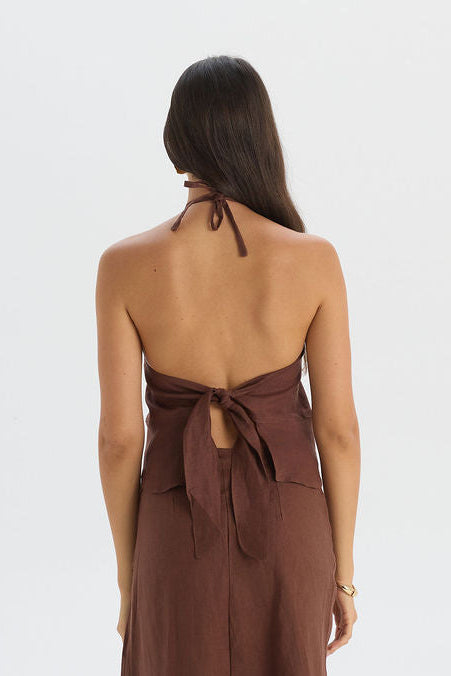 Discover refined relaxation with our Jane Top, a versatile linen slip top that embodies a graceful, feminine silhouette. Crafted from light and airy fabric, this piece is designed to offer sophisticated comfort that feels as luxurious as it looks. Featuring a flattering halter neckline and a delicate tie-back detail, it transitions effortlessly from special evening occasions to casual beach days.